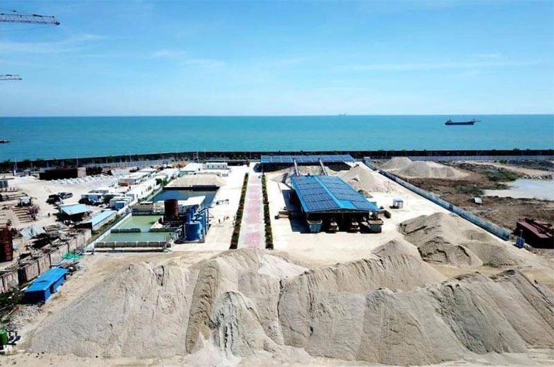 海南四周環(huán)海,海砂利用十分有利。海沙中富含負(fù)價(jià)氯離子,具有較強(qiáng)的侵蝕性,其生成的氯化鹽會(huì)降低結(jié)構(gòu)物的強(qiáng)度、剛度和穩(wěn)定性。因此在用海沙之前,首先需要對(duì)海沙中的鹽分、雜質(zhì)等用洗沙機(jī)反復(fù)的沖洗,直至可以達(dá)到符合建筑用砂的標(biāo)準(zhǔn),這就是海砂淡化技術(shù)。